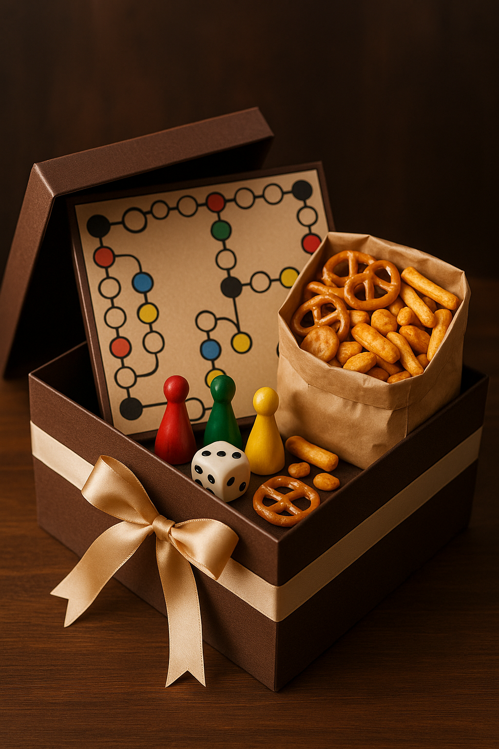 Diese Box macht aus einem simplen Abend einen erinnerungswürdigen Moment. Mit Spiel, Snack und einem kleinen Schluck Freude.