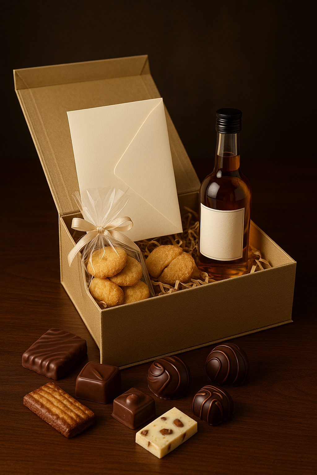 Diese Box ist die perfekte Art, Dankbarkeit zu zeigen: mit liebevollen Worten, süßen Köstlichkeiten und einem edlen Tropfen für besondere Genussmomente.