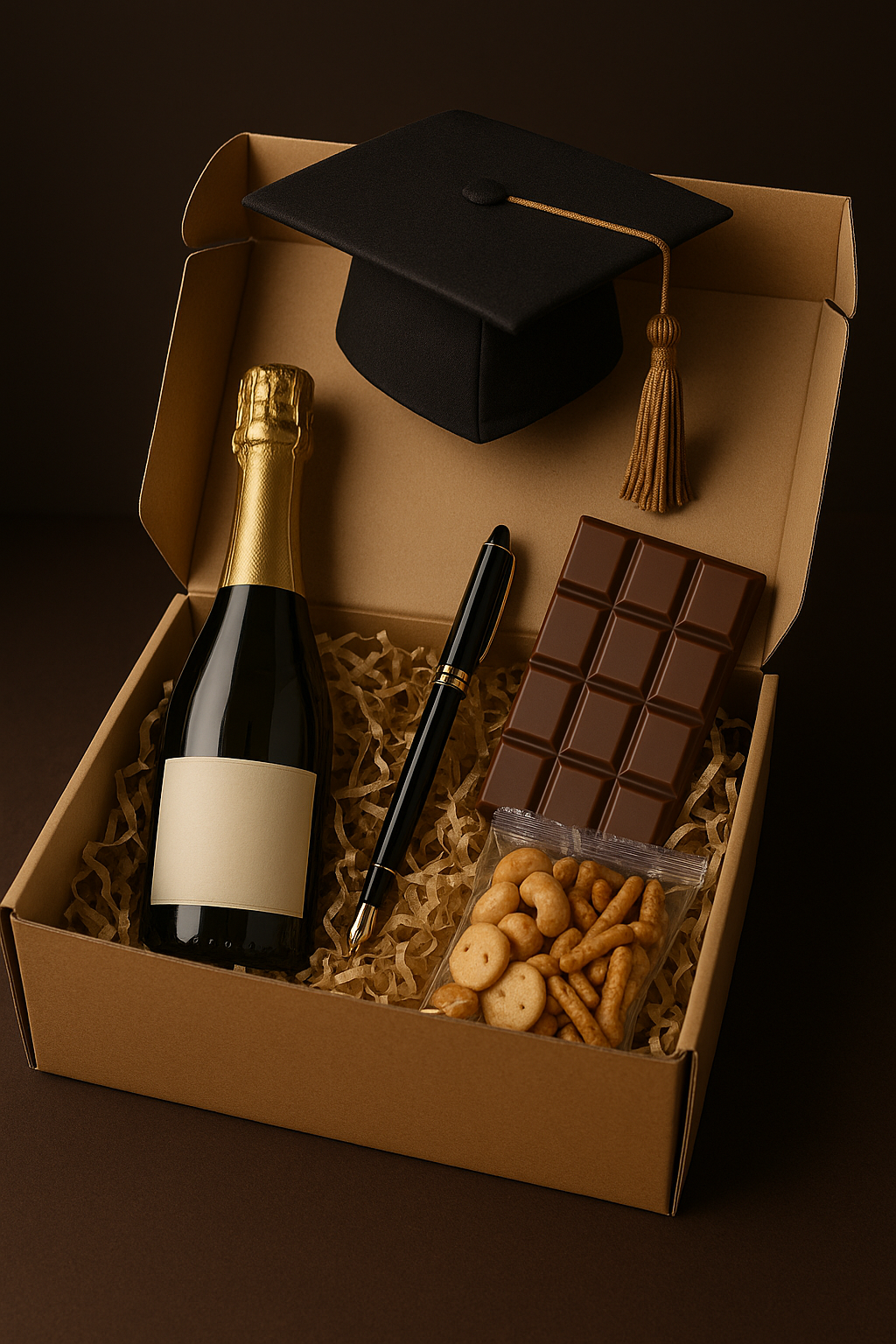 Ob Bachelor, Master oder Staatsexamen – wer einen akademischen Meilenstein erreicht, braucht mehr als Glückwünsche per WhatsApp. Diese stilvolle Überraschungsbox bringt Genuss, Stil und ein Augenzwinkern direkt nach Hause.