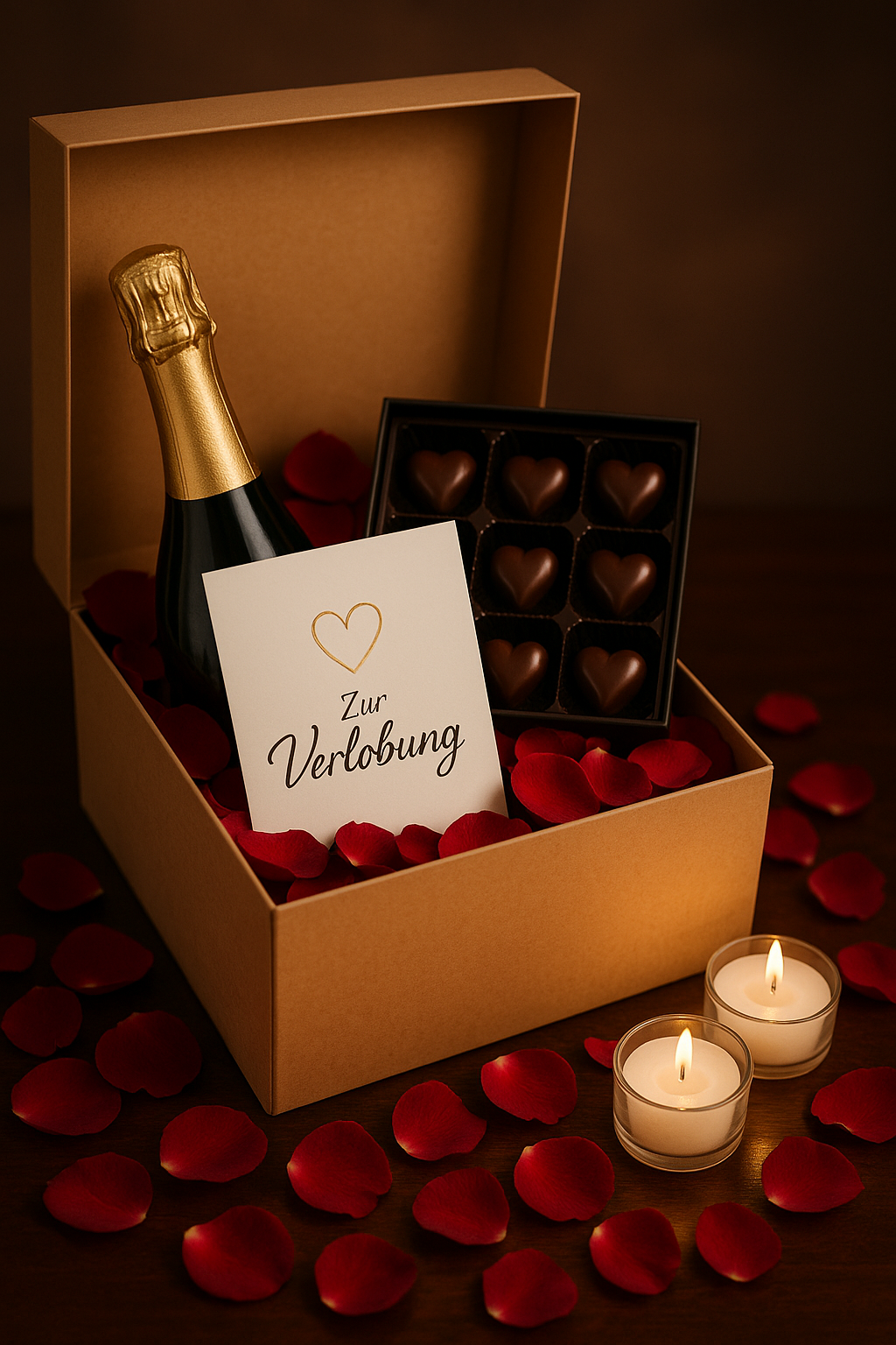 Ideal als Geschenk zur Verlobung, für Verlobungsfeiern oder als liebevolle Überraschung für den/die Verlobte*n. Diese Box ist mehr als ein Geschenk – sie ist ein „Herzlichen Glückwunsch“ mit Gefühl und Stil.